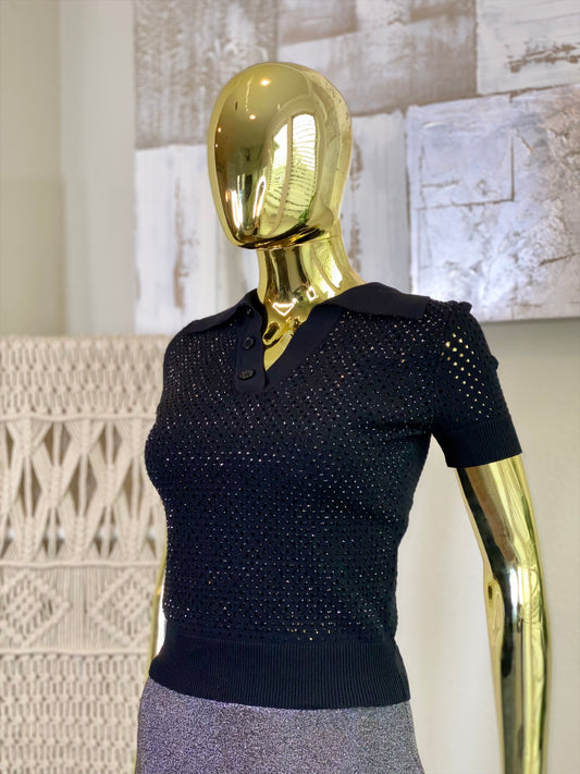 Black Stones Crochet Shirt