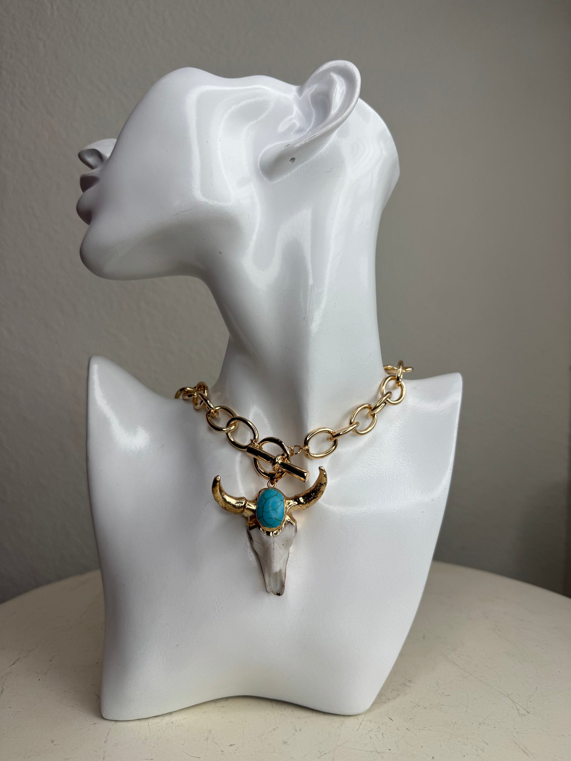 Gold plated bull necklace.