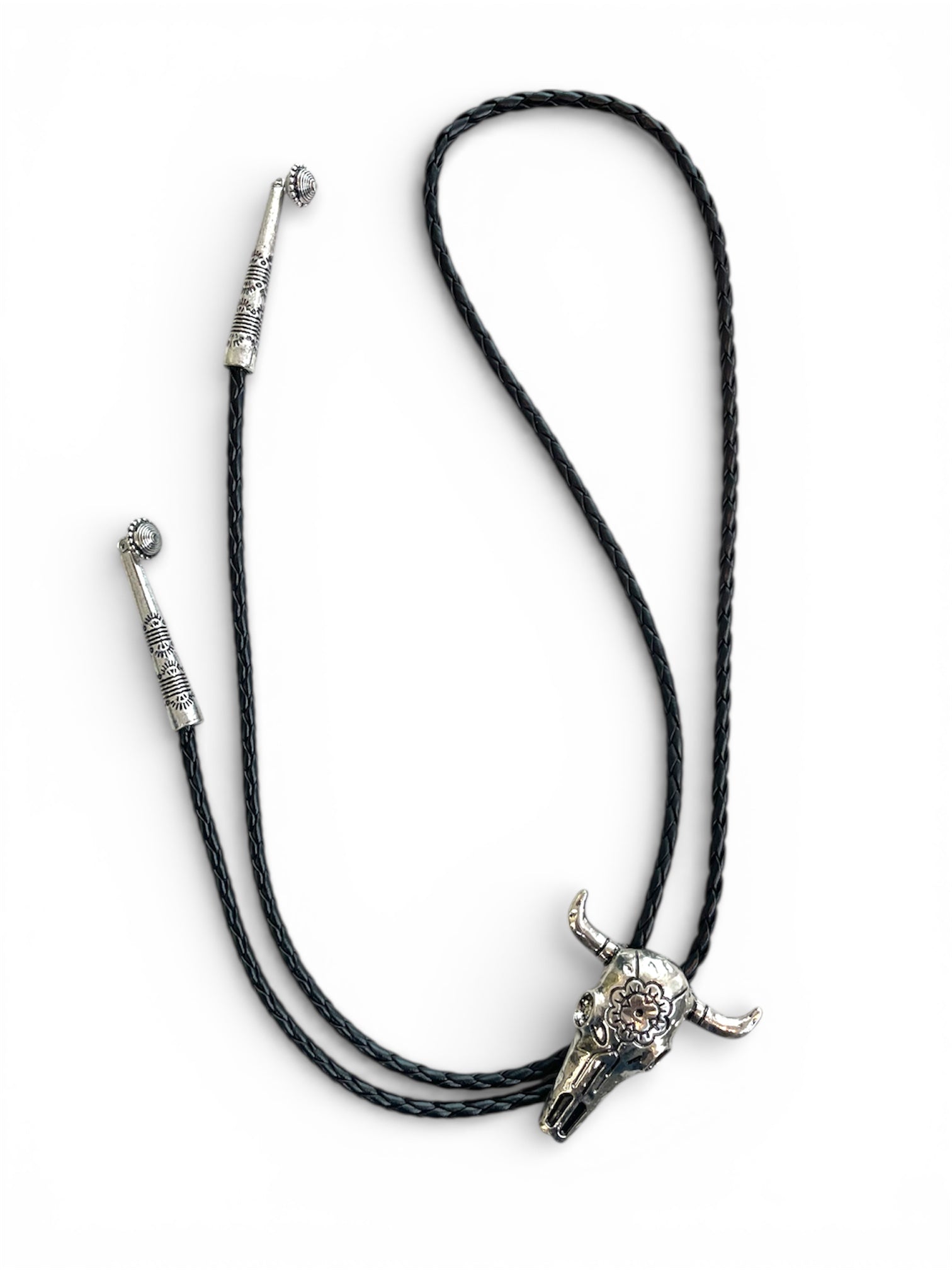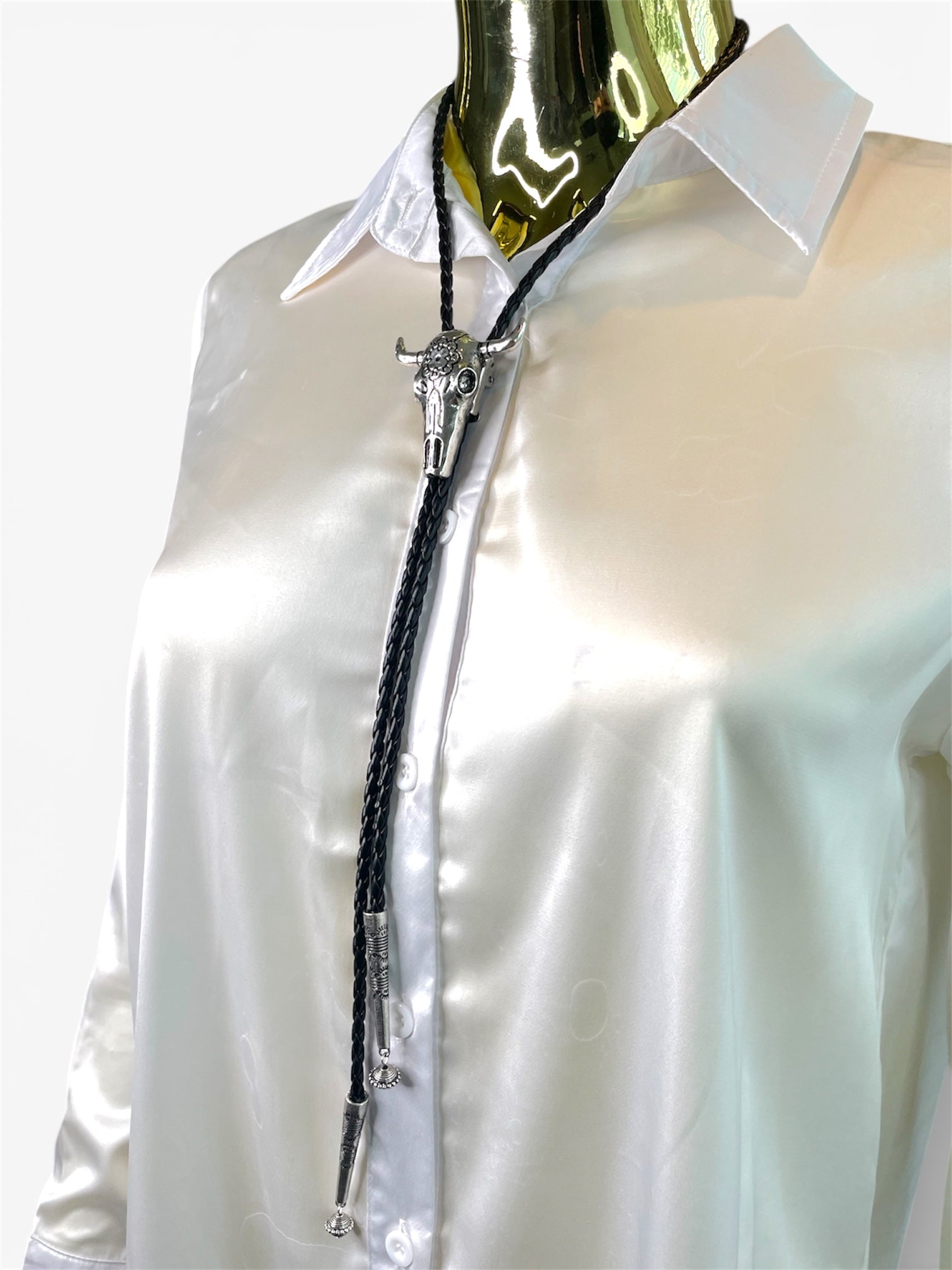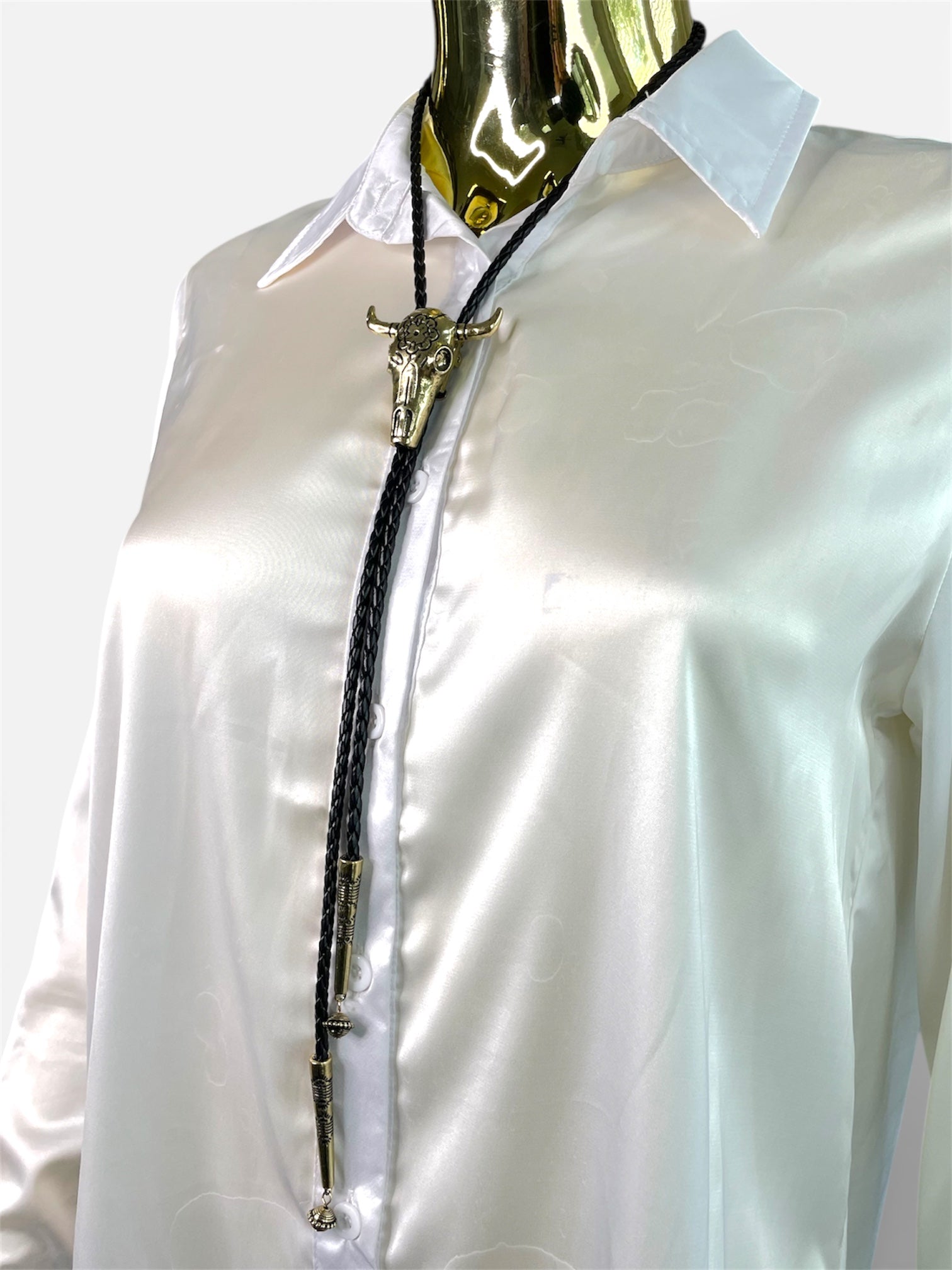 Enhance your style with the Bull Head Black Lace Collar & Earrings. The striking black lace collar adds a unique flair, while the turquoise round earrings provide a pop of color. This set effortlessly elevates any outfit, making it perfect for both casual and special occasions.