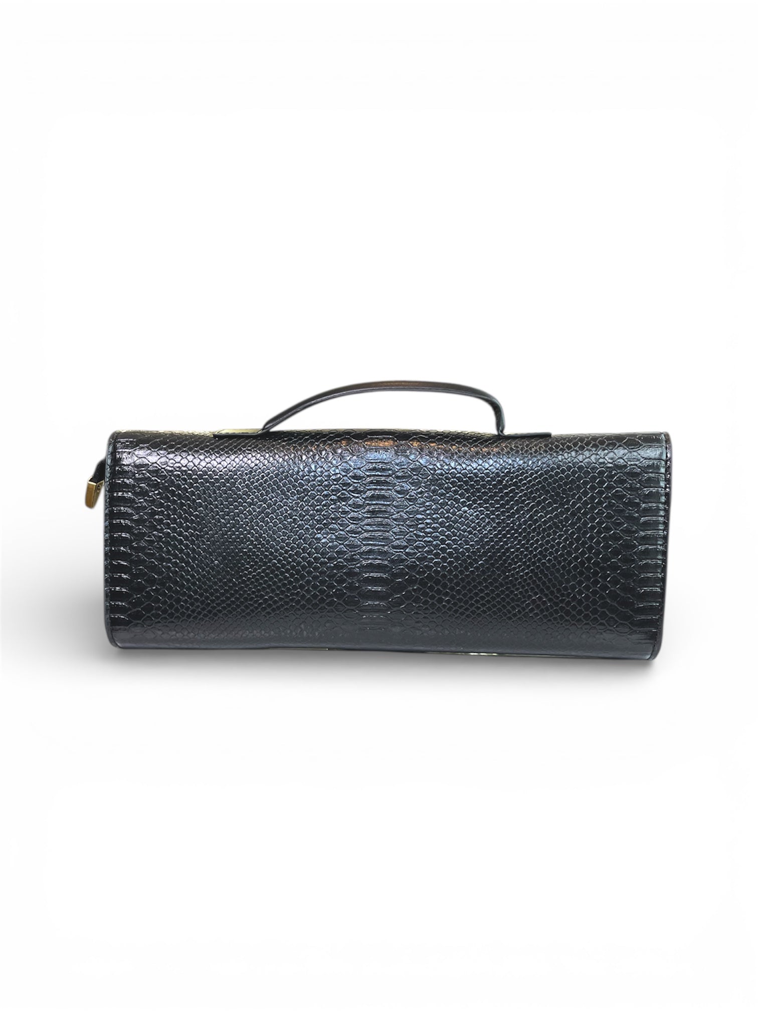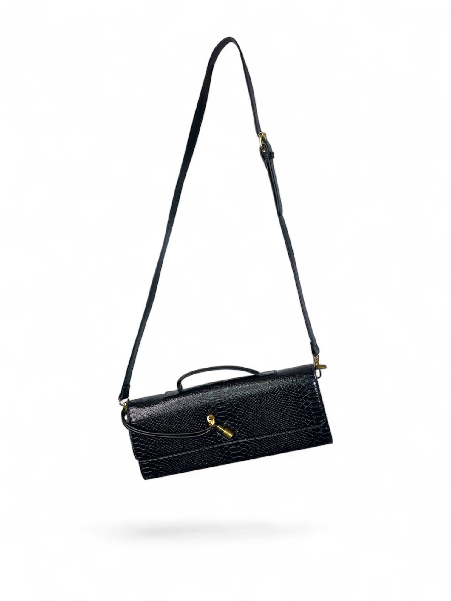 This sleek black, leather-like accessory is perfect for any occasion, offering a chic touch to your outfit while remaining compact and convenient. Carry your essentials with confidence and flair—this handbag is your new go-to companion!